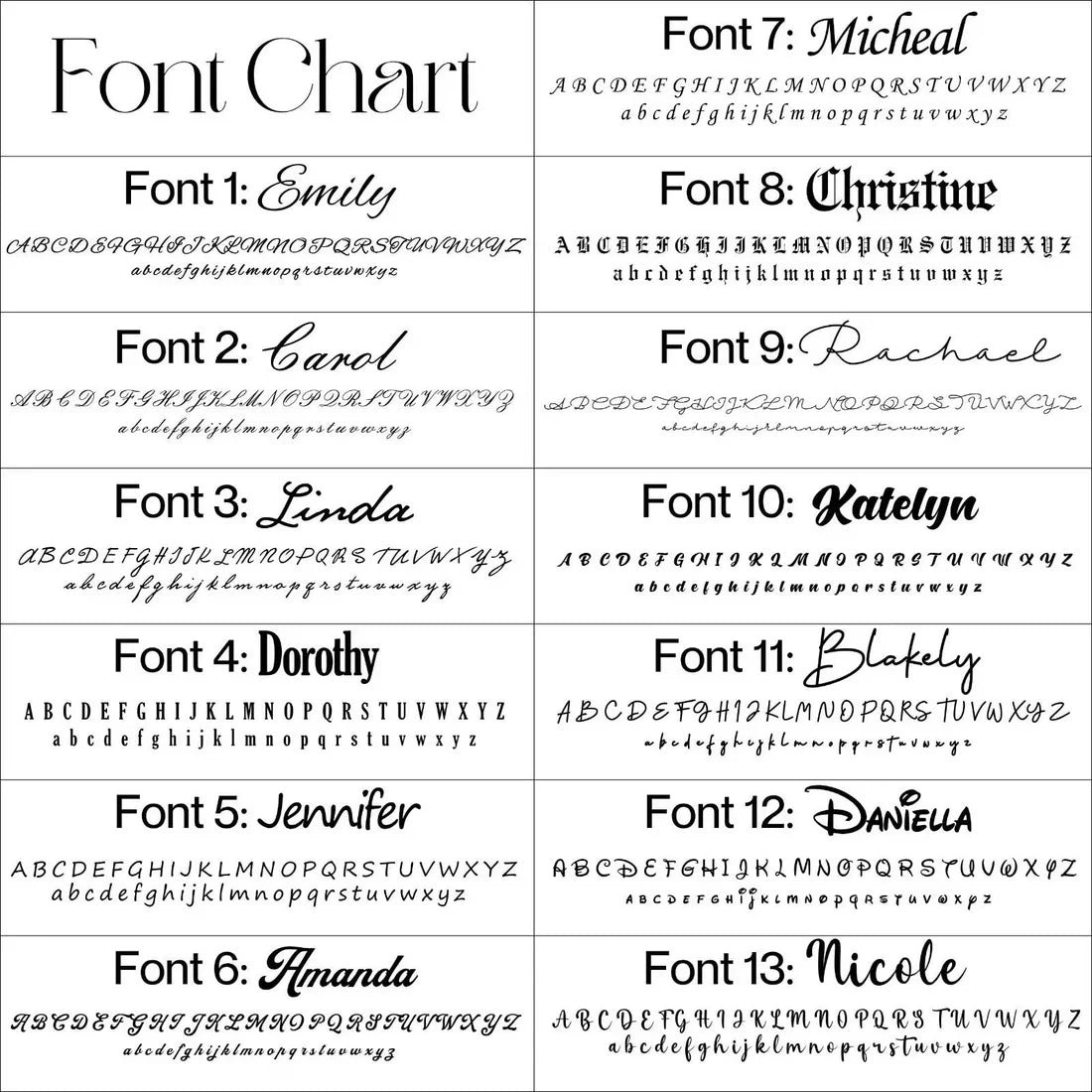 • Elegant script design for a timeless look